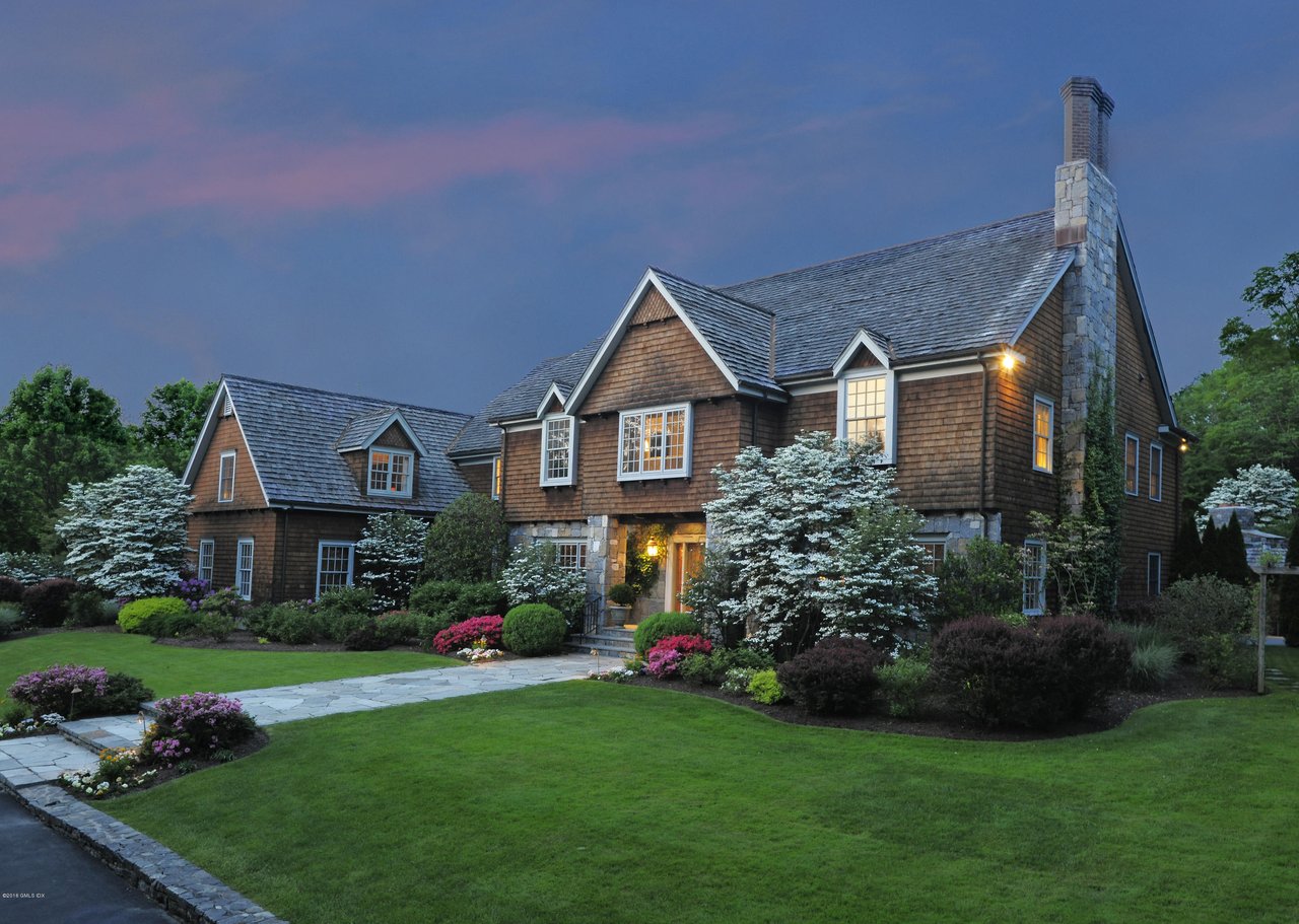 Captivating shingle style home with perfect for entertaining. Featuring a magnificent outdoor space with heated pool, pergola, pizza oven and outdoor kitchen meshing perfectly with the warm open interior. Large, gracious front to back entrance hall with wood beams and wet bar open to living room, dining room, magnificent gourmet kitchen and large family room with stone fireplace. Spacious master suite with fireplace, luxurious bathroom and sitting room and 5 additional bedrooms complete the second floor. Huge lower level boasts a movie theater, wine tasting room and lots of extra space, while the generous third floor offers a game room. Beautifully landscaped level land.